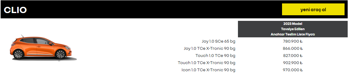 İŞTE RENAULT CLİO’NUN 2023 TEMMUZ AYI İTİBARİYLE GÜNCEL FİYAT LİSTESİ ŞU ŞEKİLDE: