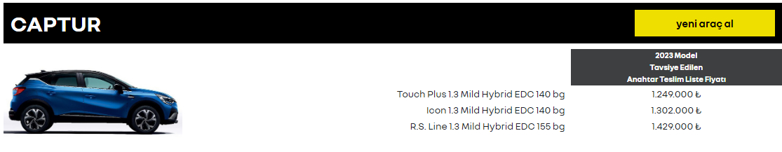 İŞTE RENAULT ARAÇLARININ 2023 TEMMUZ AYI İTİBARİYLE GÜNCEL FİYAT LİSTESİ ŞU ŞEKİLDE: