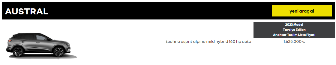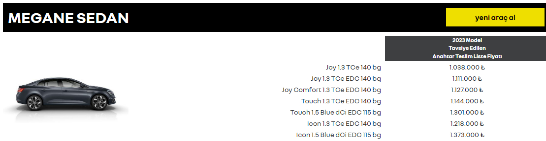 Öte yandan Renault'un Taliant, Zoe, Captur, Megane Sedan, Austral, Koleos modellerinin tamamına da değişen fiyat aralıklarına zam yapıldı.
