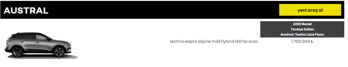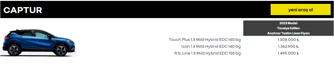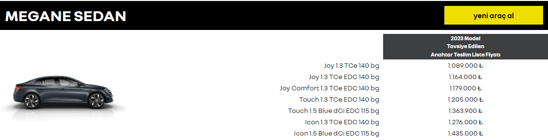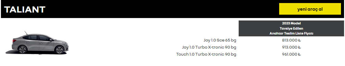 Öte yandan Renault'un Taliant, Zoe, Captur, Megane Sedan, Austral, Koleos modellerinin tamamına da değişen fiyat aralıklarına zam yapıldı.