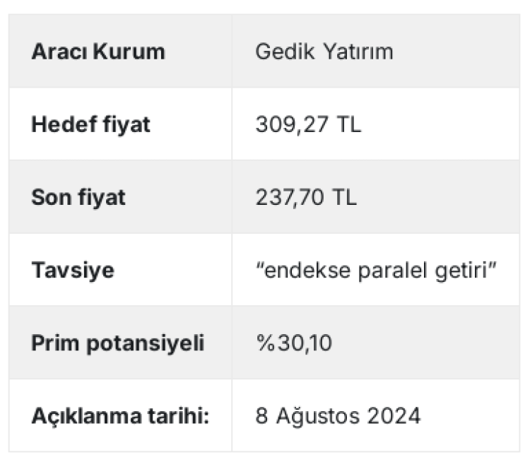 Gedik Yatırım, TOFAŞ için hedef fiyatını korurken, tavsiyesi ise “endekse paralel getiri” oldu.
