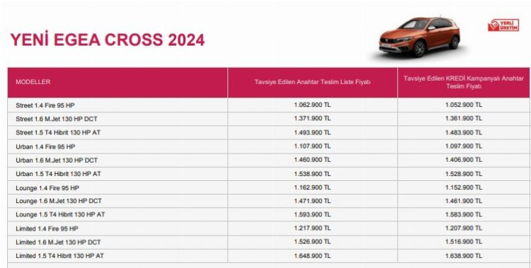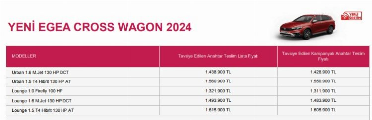 Mayıs ayı itibariyle TOFAŞ Fiat'ta 2024 model araçlara yüzde 3 oranında bir yeni fiyat güncellemelesi yapılarak zamlı fiyat listesi duyuruldu.