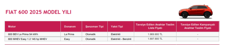 İşte Fiat Ocak 2026 otomobil fiyat listesi...