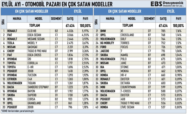 Otomotiv yazarı Emre Özpeynirci sosyal medya hesabından Eylül ayında en çok satılan otomobil modellerini paylaştı...