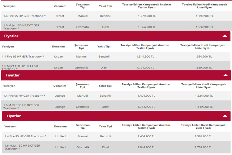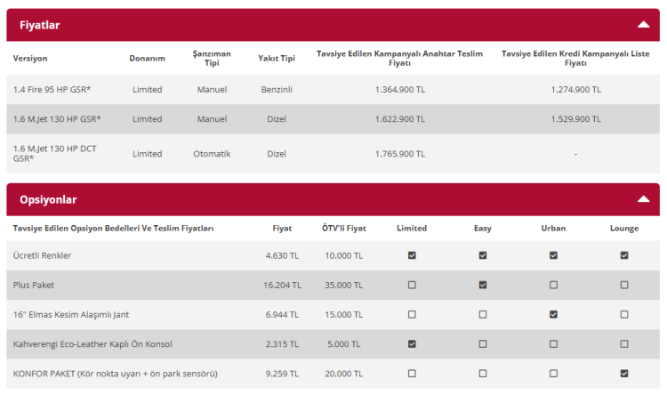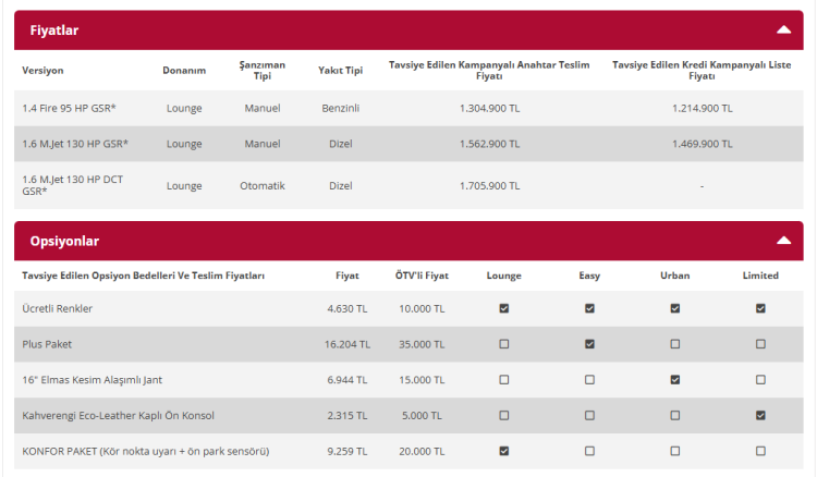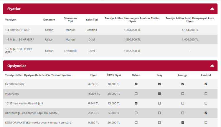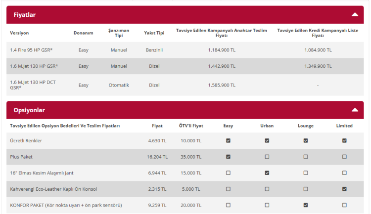 2025 model Easy 1.4 Fire 95 HP GSR'nin tavsiye edilen kredili fırsat listesi indirimli fiyatı ise 1 milyon 84 bin 900 TL...