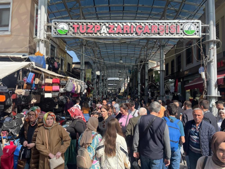 UNESCO Dünya Miras Alanı sınırları içinde bulunan, Bursa'da yaklaşık 700 yıldır ticaretin kalbi olarak bilinen Hanlar Bölgesi'ndeki kalabalıkta kent dışından gelen turistlerin yoğunluğu da etkili oldu.
