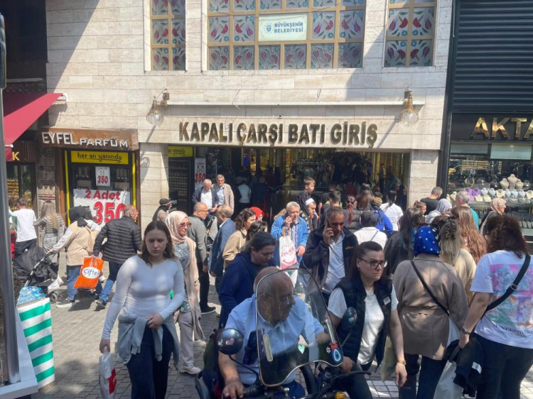 Kapalı Çarşı'da adeta insan seli oluştu ve vatandaşlar zaman zaman kalabalık içinde yürümekte bile zorlandı.