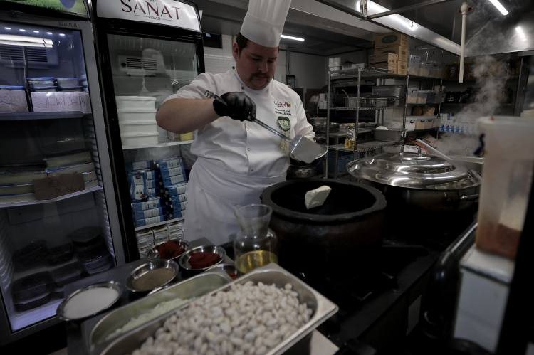 "Bizde helmeli diye tabir ettiğimiz güveçlerde yapılır. Önce soğanları güzelce kavrulur, sonra toz biber, salçası vesaire diğer ürünler girer. Güveçte kısık ateşte uzun süreli şekilde pişer. Keşke odun ateşinde eski usullerde pişirilebilse ama şu anda da elimizden geldiğince kısık ateşte uzun süreli pişirmeler yaparak eskiyi yad ederek, eskiye uygun şekilde yapmaya çalışıyoruz."