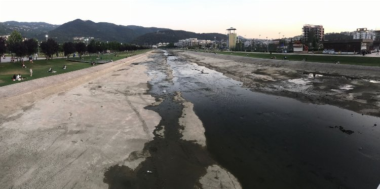 Bünyesinde aktivite alanları, spor alanları, kafeteryalar ve çocuk oyun parklarının yer aldığı Bursa'nın en popüler noktalarından Hüdavendigar Kent Parkı'nın ortasından geçen Nilüfer çayı adeta kurudu.
