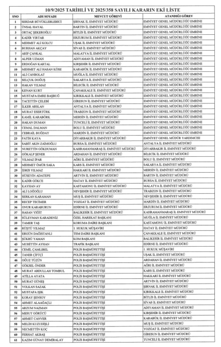Resmi Gazete'de yayımlanan kararname ile Bursa dahil 37 ilin emniyet müdürü değişti.