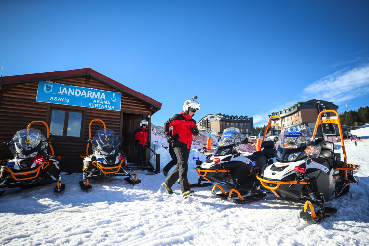 Türkiye'nin önemli kayak merkezlerinden Uludağ'da görevli Jandarma Arama ve Kurtarma (JAK) timi, yerli ve yabancı turistlerin rahat tatil geçirebilmeleri için kayaklı ve motorize ekipleriyle gece gündüz görev yapıyor.