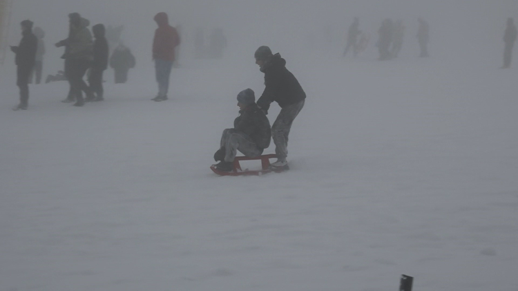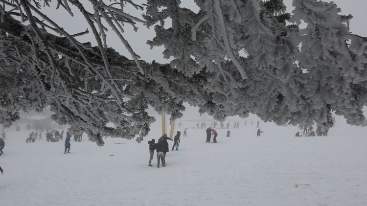 Kar kalınlığının 25 santimetreye ulaştığı zirvede, günübirlik gelenler, doyasıya eğlendi.
