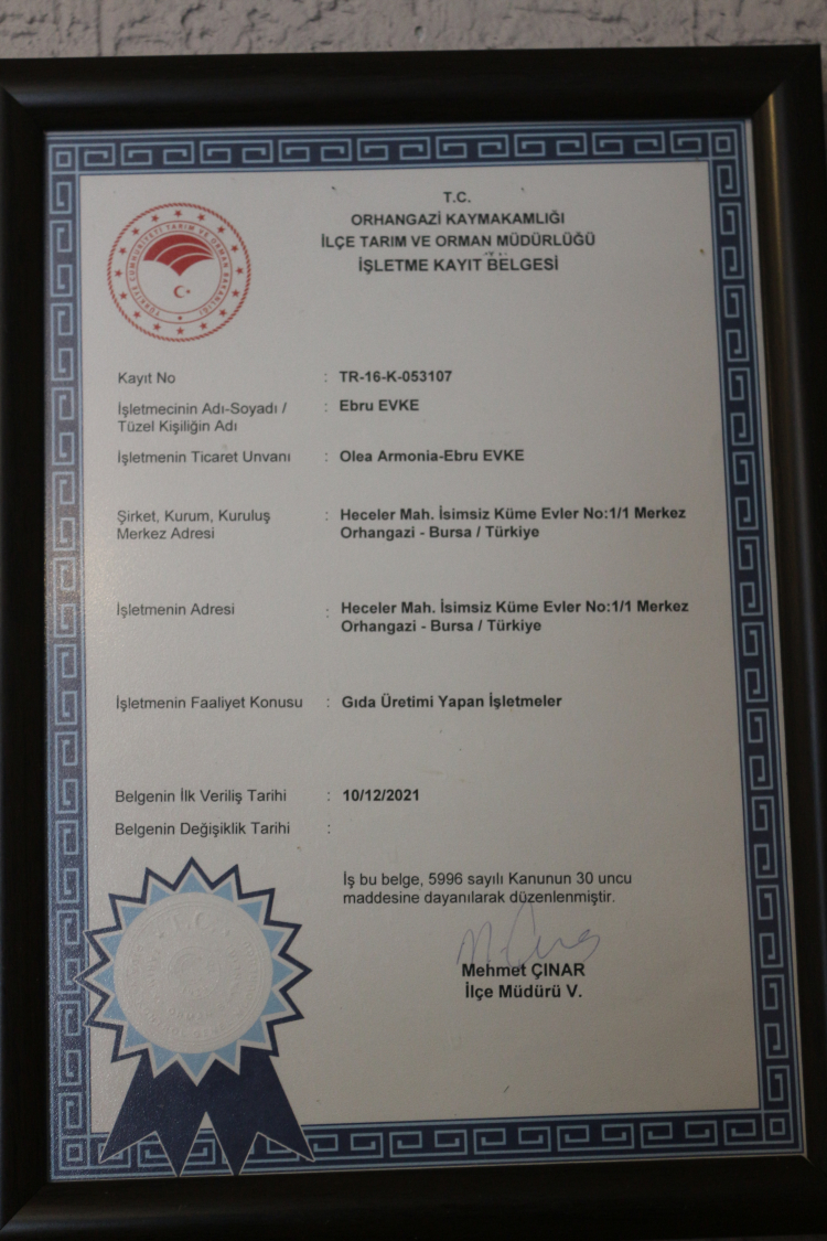 Önce 8 bin 850 metrekarelik bir yer aldıklarını daha sonra ise sonra ufak ufak zeytin sıkmaya başladıklarını söylen Evke, "Zeytin topluyoruz ama başka yerlerde sıktırıyoruz. Tenekeliyoruz, ailemize dağıtıyoruz. "Bu işi neden kendimiz yapmıyoruz." dedik. O zaman 40 yaş altına hibe desteği vardı. Kızımın adına Tarımsal ve Kırsal Kalkınmayı Destekleme Kurumu'yla (TKDK) görüştük ve bu araziye yatırımla ilgili 'olur' aldık. Daha sonra projemizi belediyeye onaylattık, ruhsatımızı aldık. İnşaatımıza başlayıp bitirdik. Her şeyimiz bitti. Burada 5. sezonumuz. Burası, bu bölgenin en iyi yağ fabrikası. Şimdi iki tane daha yapılıyor. O fabrikaların nasıl yapıldığını incelemedim. Ne belgelere sahipler onları da bilmiyorum ama bizim fabrikamızın en ufak eksik bir belgesi yok. Her şeyimiz tam devam ediyoruz. " ifadelerini kullandı.