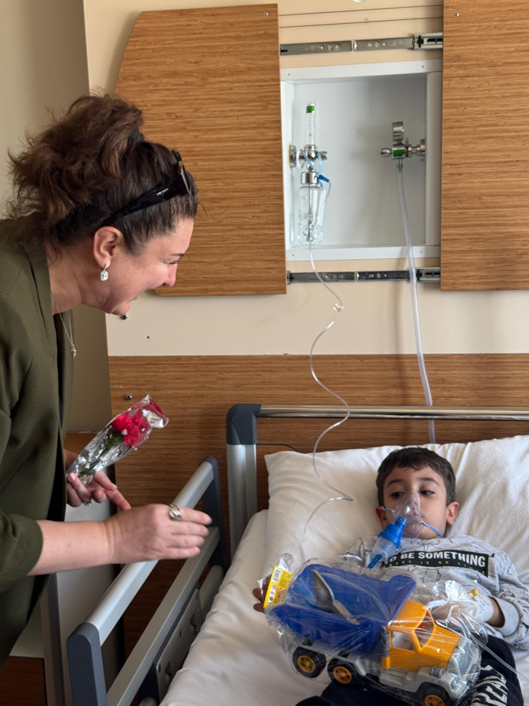 Orhangazi Belediye Başkanı Bekir Aydın’ın eşi Kıymet Aydın da ziyarete katılarak hastalarla yakından ilgilendi. Oda oda dolaşarak geçmiş olsun dileklerini ileten Aydın, zaman zaman duygusal anlar yaşadı.