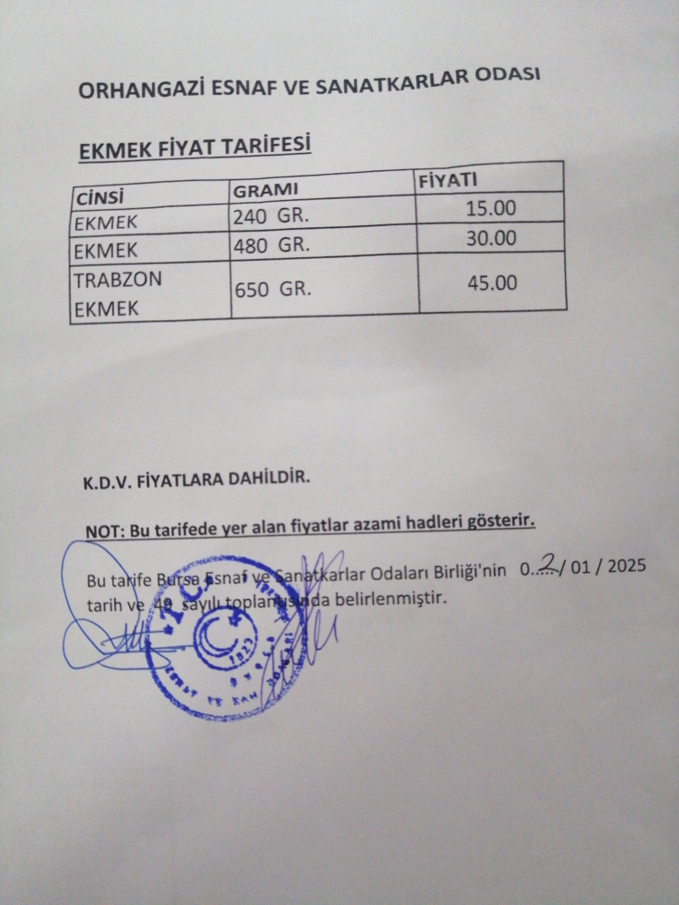 Orhangazi’deki ekmek fiyatlarına yönelik zam süreci, Fırıncılar ve Unlu Mamüller Kooperatifi’nin Esnaf ve Sanatkârlar Odası aracılığıyla yaptığı başvuru üzerine başladı. Bursa Esnaf ve Sanatkârlar Odaları Birliği tarafından onaylanan zam talebi, Orhangazi’ye iletildi. Bu gelişmenin ardından, Orhangazi Esnaf ve Sanatkârlar Odası ile Fırıncılar ve Unlu Mamüller Kooperatifi bir araya gelerek ekmek zammını onayladı. Zamla birlikte ekmeğin gramajında da artış sağlandı.