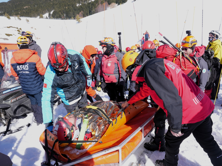 Toplam 113 personelin yer aldığı tatbikatta, senaryo gereği çığ altında kalan üç kazazedeye ulaşmak için ekipler koordineli şekilde çalışma başlattı. Arama kurtarma faaliyetlerinde özel arama cihazları, sondalama teknikleri ve arama kurtarma köpekleri kullanıldı. Çalışmalar sonucunda saat 16.30 itibarıyla çığ altında kalan üç kazazedeye ulaşıldı. Senaryoya göre iki kazazedenin hayatını kaybettiği belirlenirken, bir kazazede ise sağ olarak kurtarıldı. Sağ kazazedenin yeri AFAD’ın canlı arama köpeği tarafından tespit edildi. Kar kütlesi altından çıkarılan kazazedelere olay yerinde ilk müdahale yapıldıktan sonra güvenli bölgeye tahliyeleri gerçekleştirildi.