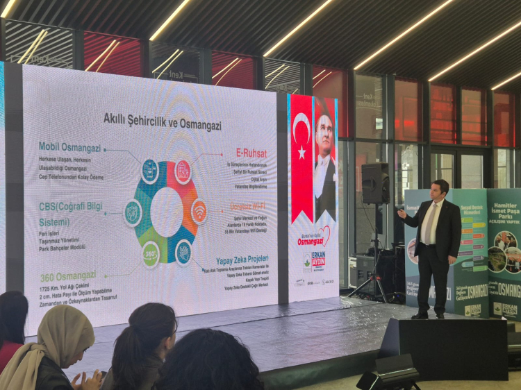 Yıl boyunca açılışını gerçekleştirdikleri sosyal tesislere dair bilgilendirmelerde bulunan Osmangazi Belediye Başkanı Erkan Aydın, "Şu an içinde bulunduğumuz Halk lokantası şimdi ismini kent lokantasına çevirdik. O zaman halk lokantası ismini aslında daha çok beğenmiştik ama genel merkezimizin bize gönderdiği yazıyla kent lokantası olarak hizmet vermeye başladık. Bugüne kadar 200 bin yurttaşımız buradan faydalandı, yemek yedi. Hizmetler de devam ediyor. Genç Kafe'nin açılışını gerçekleştirdik.105 bin vatandaşımız buradan yararlandı. Yenibağlar Kadın Spor Merkezi gerçekleştirdik. Muhtarımızda kadın. Şu anda bütün randevuları dolu. Atatürk Anıtı Açılış Töreni gerçekleştirdik. Ayça Azak Gündüz Bakım Evi ve Çocuk Kreşi'ni açtık. Bursa'da Türkiye'de en iyi eğitim koşullarını burada veriyoruz. Emek Spor Tesisi'nin açılışını yaptık. İsmail Halkı Tonguç Genç Kafe'nin de ikincisini açtık. Toplamda 6 yeni kreşimizin protokolünü imzaladık. 500 çocuğumuza hizmet verecek kapasitede kreşlerimizin olmasını hedefliyoruz. Soğukkuyu'da Kent Lokantası'nın ikincisini Genç Kafe şubesininde üçüncüsünü burada açtık. Herkese ulaşan, vatandaşlarımızın kolay ödemelerini yapabilmeleri adına Mobil Osmangazi uygulanmasını yaptık. Şehir merkezinin yoğun olduğu bölgelerde 15 farklı noktada ücretsiz Wifi sağlıyoruz. Yapay Zeka Projelerine önem veriyoruz. 9 bin 237 kişiyle randevulu görüşme gerçekleştirdik. 136 mahalleye ziyarette bulunduk. Bursaspor maçlarına çocuklara eşlik ederek birlikte vakit geçirdik. Canlar için yerden ısıtmalı barınağımız, kedi villamız bulunuyor. 153 dönüm bir yer daha hayvan barınağı anlaşmalar bitti, yapacağız. 720 adet sokak hayvanı sahiplendirdik." dedi.
