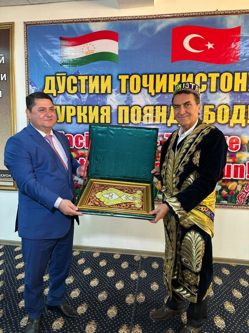 Başkan Dündar, Tacikistan temasları kapsamında Türkiye’nin Duşanbe Büyükelçisi Uğur Acar ve TİKA Koordinatörü İbrahim Ethem Ünal’a tarafından ağırlandı.