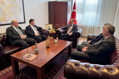 Osmangazi Belediye Başkanı Erkan Aydın, ‘Osmangazi Kardeşler Buluşması’ etkinliği kapsamında gittiği Üsküp’te Türkiye Cumhuriyeti’nin Üsküp Büyükelçisi Fatih Ulusoy’u ziyaret etti. Ziyarette Başkan Aydın’a Osmangazi Belediyespor Yönetim Kurulu Başkanı Fatih Karayılan, Osmangazi Belediye Başkan Yardımcısı Tolga Kornoşor ve KKTC Akademi Sanat Derneği Başkanı Gencay Eroğlu da eşlik etti. Misafirperverliği için Büyükelçi Fatih Ulusoy’a teşekkürlerini sunan Başkan Aydın, “İkili ilişkilerin geliştirilmesi, kültürel birlikteliğin sağlanması ve ortak projeler üzerine fikir alışverişinde bulunduğumuz verimli bir ziyaret oldu. Sayın Büyükelçimize nazik ev sahipliği ve samimi ilgisinden dolayı kendisine teşekkür ediyorum” dedi.