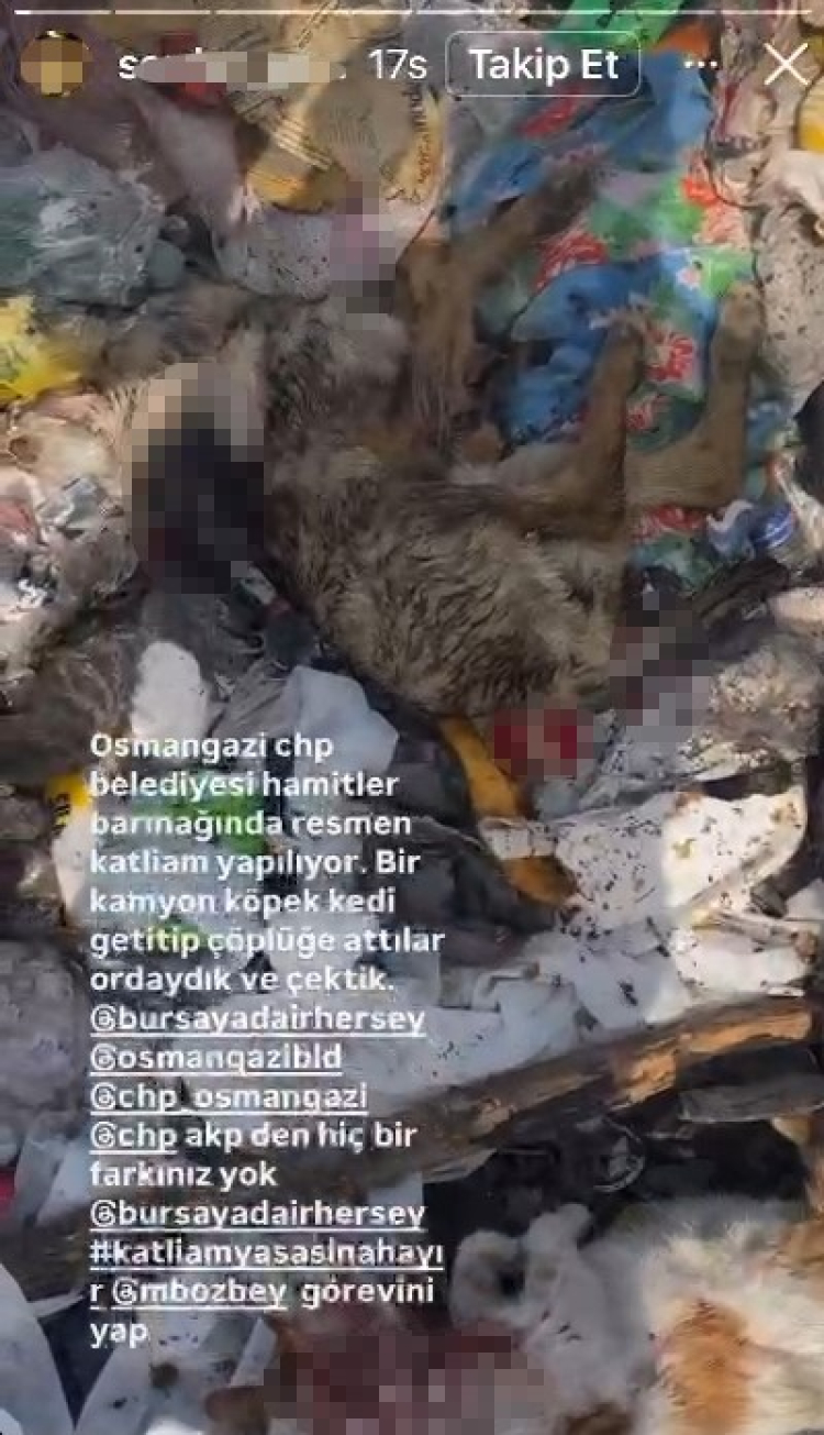 Hayvanseverler çöplüğe gidip küpeli köpeklerin kanlar içindeki cansız bedenlerini çuvallar içinde buldu. Bu görüntüler sosyal medyada büyük tepki çekti.