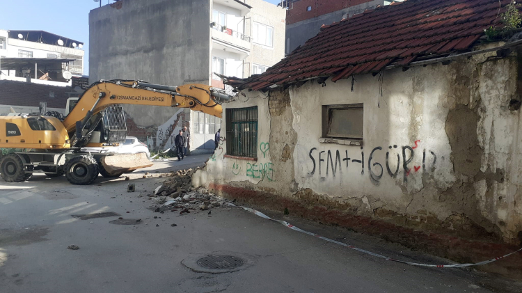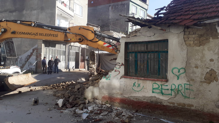 Osmangazi Belediyesi, ilçe genelinde tespiti yapılan ve yasal prosedürleri tamamlanan metruk binaları yıkmaya devam ediyor.