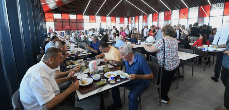 "Osmangazi Belediyesi'nin Kent Meydanı'nda bir süre önce açtığı Halk Lokantası'nda öğle yemeği için sıraya girdim ve kredi kartımla peşin 80 lira ödeyip menüde bulunan dört kap yemeği aldım.