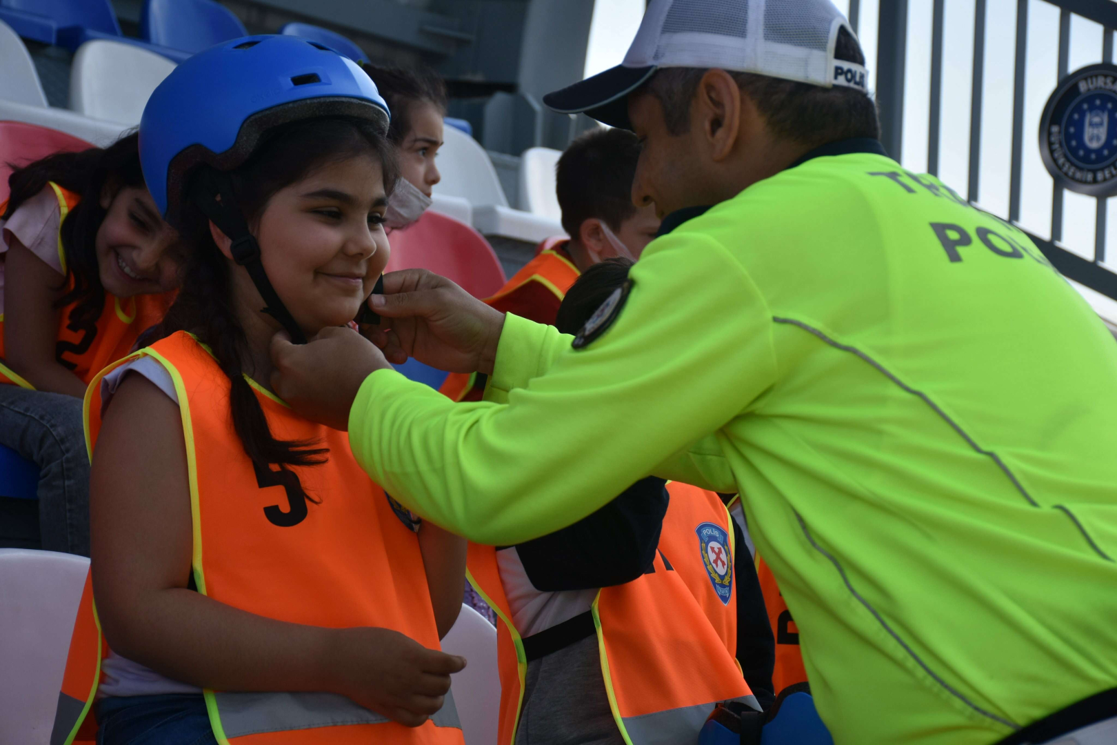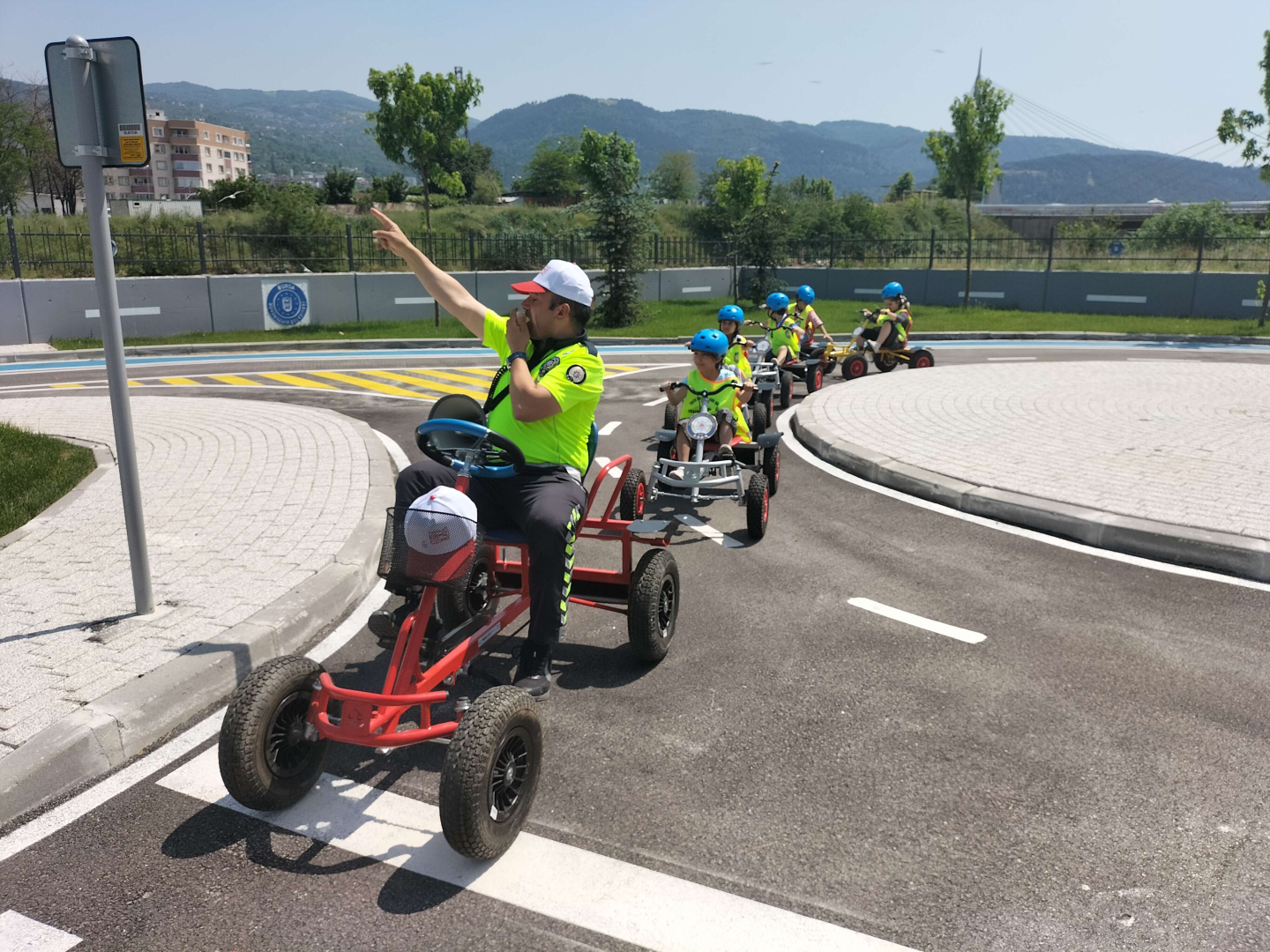 İçişleri Bakanlığınca hayata geçirilen ''Çocuk Trafik Eğitim Parkları Projesi'' kapsamında Bursa Emniyet Müdürlüğü, anaokul, ilkokul ve ortaokul düzeyindeki öğrencilere trafik eğitimi verdi.