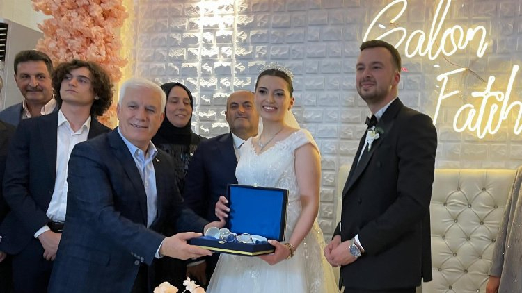 Bursa Büyükşehir Belediye Başkanımız Mustafa Bozbey’in nikah kıydığı törende renkli görüntüler yer aldı. Fatih Düğün Salonu’nda gerçekleştirilen nikaha iş ve siyaset dünyasından pek çok tanınmış sima yer aldı.