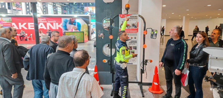 Fuarda açılan stantta ziyaretçilere; traktörlerin kara yolunda güvenli kullanımı, devrilmeye karşı koruma sağlayan ROPS/kabin sistemlerinin önemi, traktörlerin ön ve arka ışık donanımlarıyla birlikte flaşörlü sarı lambaların kullanılması konularında bilgilendirme yapıldı.