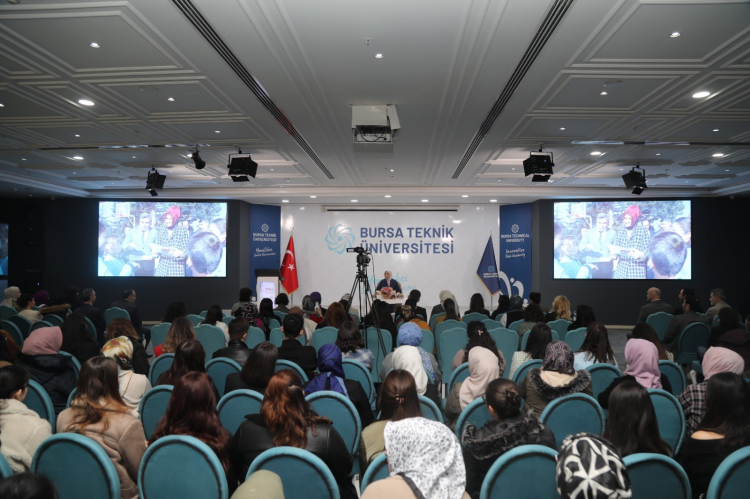 Mimar Sinan Yerleşkesi Turkuaz Salon’da düzenlenen 8 Mart Dünya Kadınlar Günü Özel Programı’na; Afyonkarahisar Valisi Doç. Dr. Kübra Güran Yiğitbaşı, AK Parti Bursa Milletvekili Emine Yavuz Gözgeç, BTÜ Rektörü Prof. Dr. Naci Çağlar, Rektör Çağlar’ın eşi Berna Çağlar, Yıldırım Belediye Başkan Yardımcısı Ayşe Ertan, Rektör Yardımcıları Prof. Dr. Beyhan Bayhan, Prof. Dr. Sinan Uyanık ve Prof. Dr. Barış Tamer Tonguç, Genel Sekreter Selim Uzun, üniversite akademik ve idari kadın personeli katıldı. Programın açılış konuşmasını yapan BTÜ Rektörü Prof. Dr. Naci Çağlar, tüm kadın personelin gününü kutlayarak, "Üniversitemiz, kadına ve aileye yönelik çalışmalara büyük önem veriyor. Bu kapsamda kurduğumuz Kadın ve Aile Koordinatörlüğü’nde pek çok projeye imza atıyoruz. Üniversitemiz yönetiminin yarısını, Bursa teknopark’ın ise tamamını kadın personelimiz oluşturuyor. Her alanda yaptığı çalışmalarla büyük başarılar elde eden, üniversitemize fayda sağlayan kadın çalışanlarımız aynı zamanda akademik araştırmalarıyla daha güçlü bir toplum inşa etme noktasına katkı sağlıyor. Bu anlamlı günde, tüm kadın personelimize bir kez daha çalışmaları için teşekkür ediyor, 8 Mart Dünya Kadınlar Günü’nü kutluyorum" dedi.