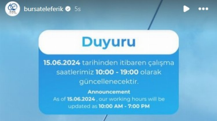 Şiddetli rüzgar nedeniyle seferlerini durdurmak zorunda kalan Bursa Teleferik, arefe gününden itibaren çalışma saatlerinin 10:00 - 19:00 olarak güncelleneceğini duyurdu.