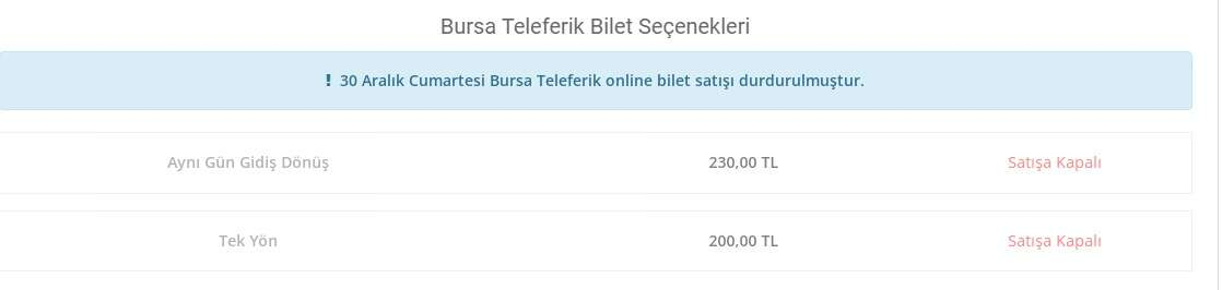 Bursa Teleferik, yoğunluk sebebiyle online bilet satışının belirsiz bir süre için durdurma kararı aldı. Zirveye çıkmak isteyenler artık sadece gişeden bilet temin edebilecek.