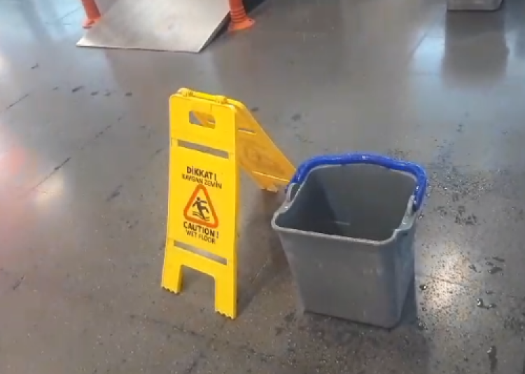 Bazı noktalarda ise kovanın yanına, 'Dikkat! Kaygan Zemin" yazılı kaygan zemin levhaları koyulduğu görüldü.