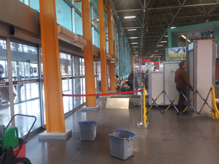 Bursa Şehirlerarası Otobüs Terminali’nde çatıdan akan suların altına önlem olarak kova koyuldu. İşte detaylar...