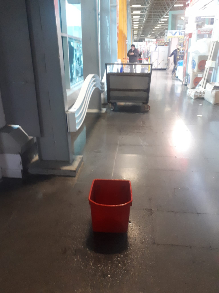 Yağmur sularının aktığı noktalara görevliler tarafından geçici önlem olarak 'kova' koyuldu.