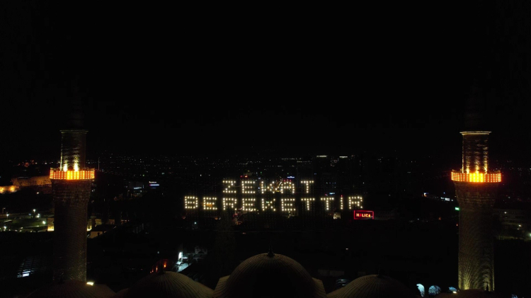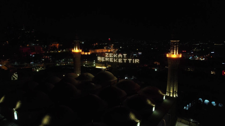 Osmanlı'dan miras asırlık mahya geleneği Bursa'da 627 yıllık tarihi Ulu Cami'de "Zekat Berekettir" yazısı ile şehri aydınlattı. Daha önceki uygulamalardan farklı olarak bu sefer yazı Uludağ'dan okunacak şekilde minarelere asıldı.