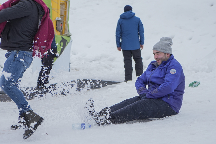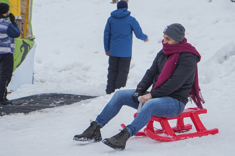 Türkiye'nin en önemli kayak ve kış turizm merkezlerinden Uludağ'da sömestr tatilini fırsat bilenler kızak ve poşetle kayarak doyasıya eğlendi.