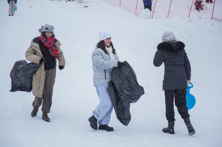 Kayak, snowboard ve telesiyej fiyatlarını yüksek bulan vatandaşlar, kendi getirdikleri poşet ve kızakla kaydı.