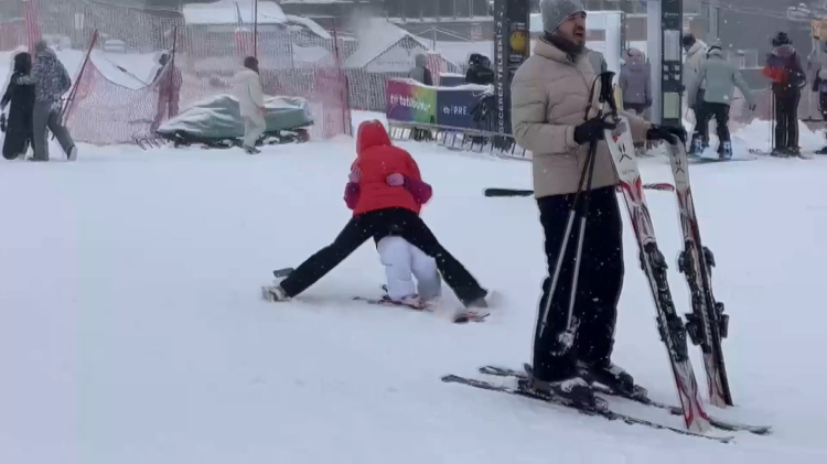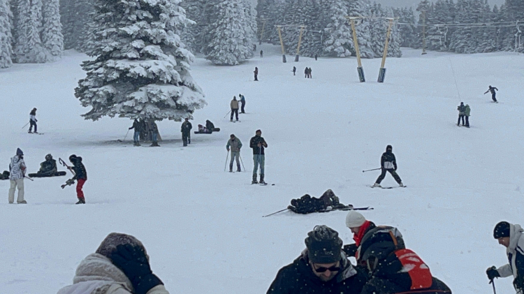 Bursa Uludağ'da acemi kayakçıların zor anları!