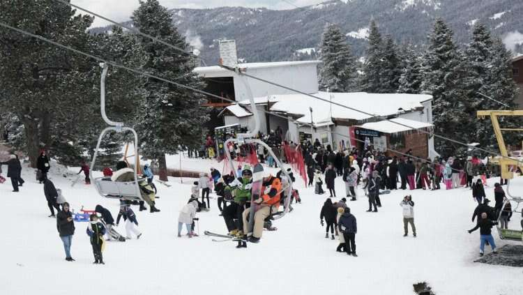 Hava sıcaklığı -7 ile -11 arasında seyrederken tatilcilere hafta sonu gelen günübirlikçiler de eklenince kayak pistleri ve telesiyej kuyruğu uzadı.