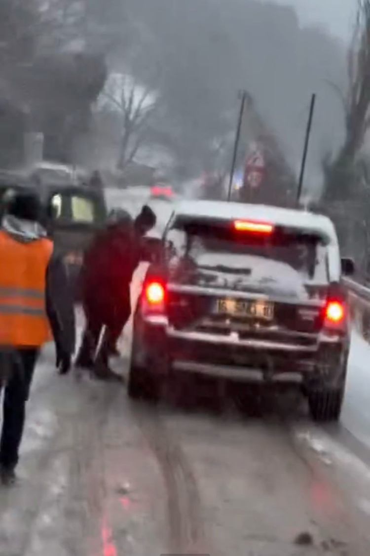 Fakat bu kez de yola tutunamayan araç karlı zeminde metrelerce kayınca, vatandaşlar aracı durdurmak için koşarak tutmaya çalıştı. Panik anları sürücünün arkadaşı tarafından kayda alınırken, ekipler zincirsiz ve kar lastiği olmadan Uludağ’a çıkmaması konusunda vatandaşları uyardı.