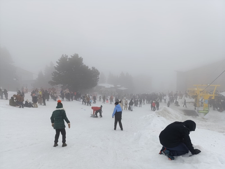 Zaman zaman tipi şeklinde yağan kar ve yoğun sise rağmen otellerde konaklayan tatilciler ve günübirlikçiler, teleski ve telesiyejlerde uzun kuyruklar oluşturdu.
