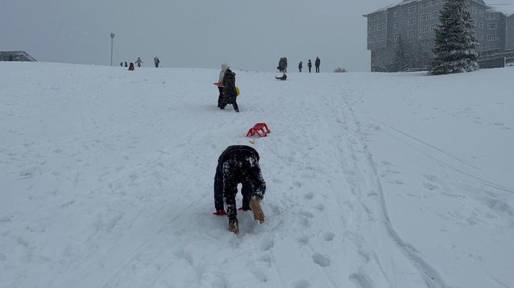 Özellikle aileler ve çocuklar karın keyfini çıkarırken, ortaya renkli görüntüler çıktı. Mart ayının sonuna gelinmesine rağmen etkili olan kar yağışı ise ziyaretçileri şaşırttı.