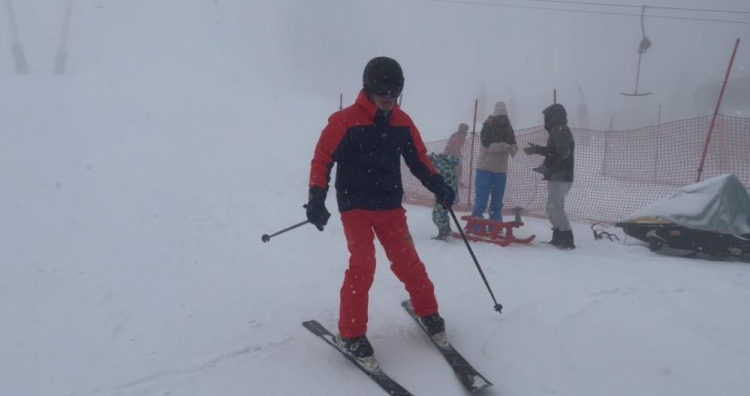 Yerli ve yabancı turistlerin akın ettiği kayak pistinde vatandaşlar sisli havaya rağmen kar yağışının tadını doyasıya yaşıyor.