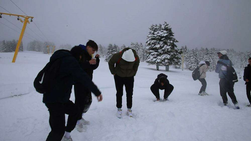 Günübirlik Uludağ'a gelen gençler ise Kasım ayında karın tadını çıkarttı.