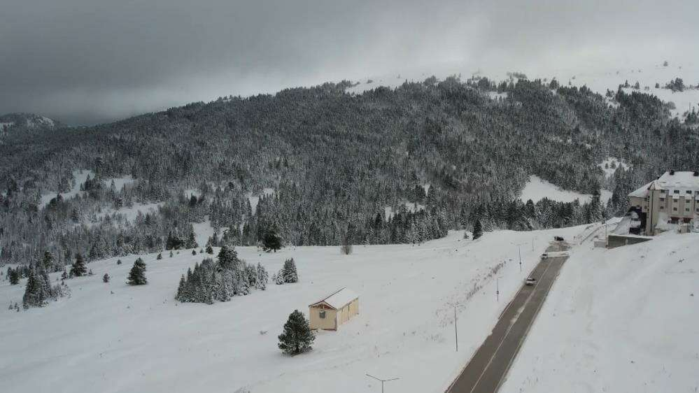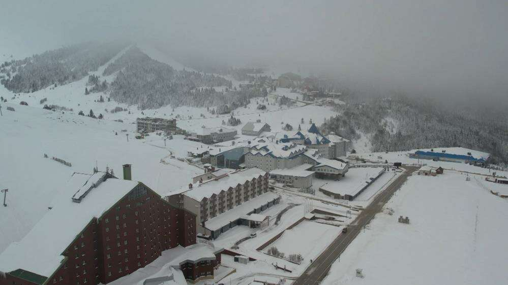 Hafta başı olmasına rağmen az sayıda vatandaş da Uludağ’da karın tadını çıkartıyor. Uludağ’ın zirvesinde zaman zaman sis hakim olurken, bu manzara havadan da görüntülendi.