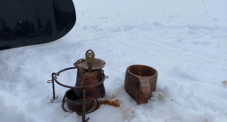 Bursa'da bir sosyal medya fenomeni, Uludağ'da kar üzerinde Türk Kahvesi pişirdi, snowboard yaparken de keyifle yudumladı. O anlar kameraya yansıdı.