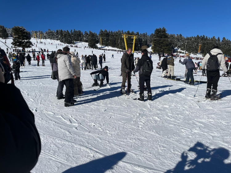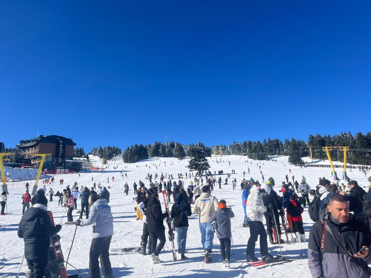Uludağ'da hafta sonu ve sömestir tatili yoğunluğu yaşanırken, telesiyejlerde metrelerce kuyruk oluştu.
