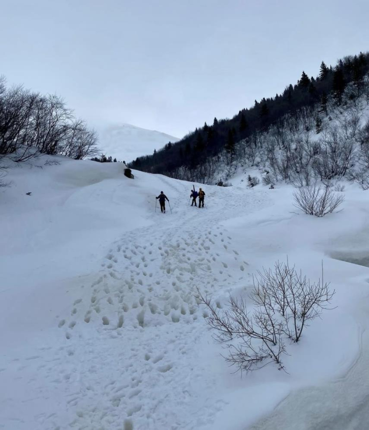 Uludağ'da hava sıcaklığının eksi 5 derecelere kadar düştüğü tırmanışta 7 kişilik ekip, karla kaplı parkurda zaman zaman sert rüzgârla da mücadele etti.