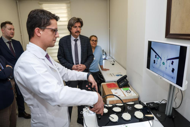 Cerrahi Tıp Bilimleri Anabilim Dalı Başkanı Prof. Dr. Ekrem Kaya ise konuşmasında laboratuvarda özellikle vasküler yani damarların birbirine eklenmesi konusunda asistanlara eğitim verileceğini vurguladı. Fakültenin diğer anabilim dallarının da periyodik kurslara gelip katılabileceğini aktaran Prof. Dr. Ekrem Kaya, "Diğer bilim dalları da burada eğitim alabilirler. Biliyoruz ki son 20 yıldır genellikle kapalı ameliyatlar yapılıyor. Belki de bundan 10 yıl sonra açık ameliyat diye bir şey kalmayacak. Kamera aracılığıyla ekrana bakarak yapılan bu ameliyatlar için maket eğitimi verilecek. Asistanlarımız, hastalardan önce maketler üzerinde çalışarak kendilerini geliştirecekler. Laboratuvarımızın hepimiz için hayırlı olmasını diliyorum" şeklinde konuştu.